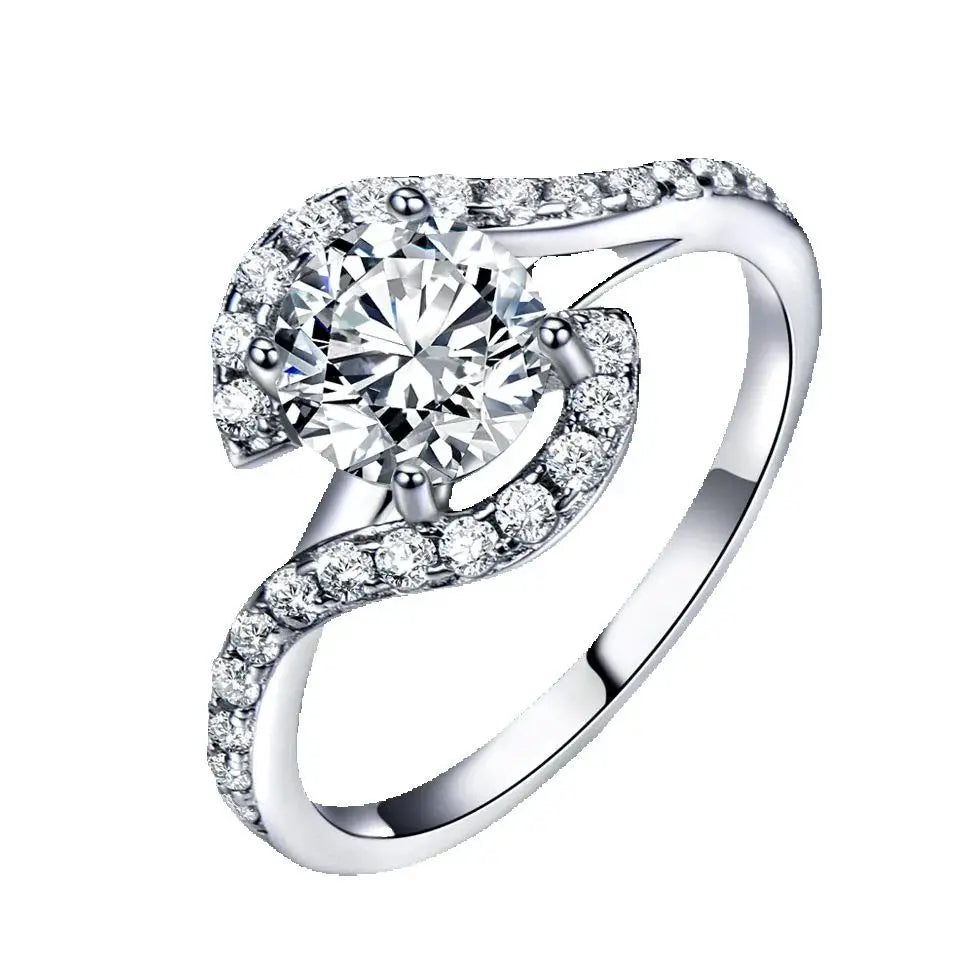 The "Giro" ring is a magnificent celebration of fluid movement and brilliant light. This captivating design features a central, exceptionally brilliant Round Cut Zircon gemstone, held in an innovative swirl setting.