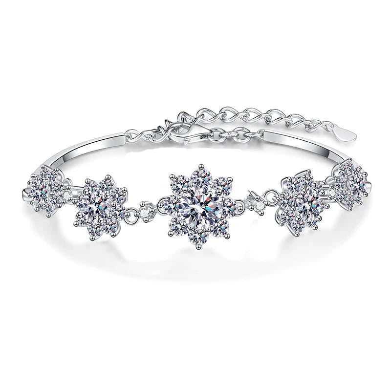 The "Fiocco" bracelet is an artistic piece celebrating the beauty and magic of winter. It features three repeated Snowflake design units, each fully paved with shimmering Zircon crystals, giving it a light-catching brilliance that resembles snow under the sun. The delicate link chain ensures fluid movement, and the adjustable chain provides a comfortable, elegant fit. It is the perfect piece to add a touch of cool, unique sophistication.