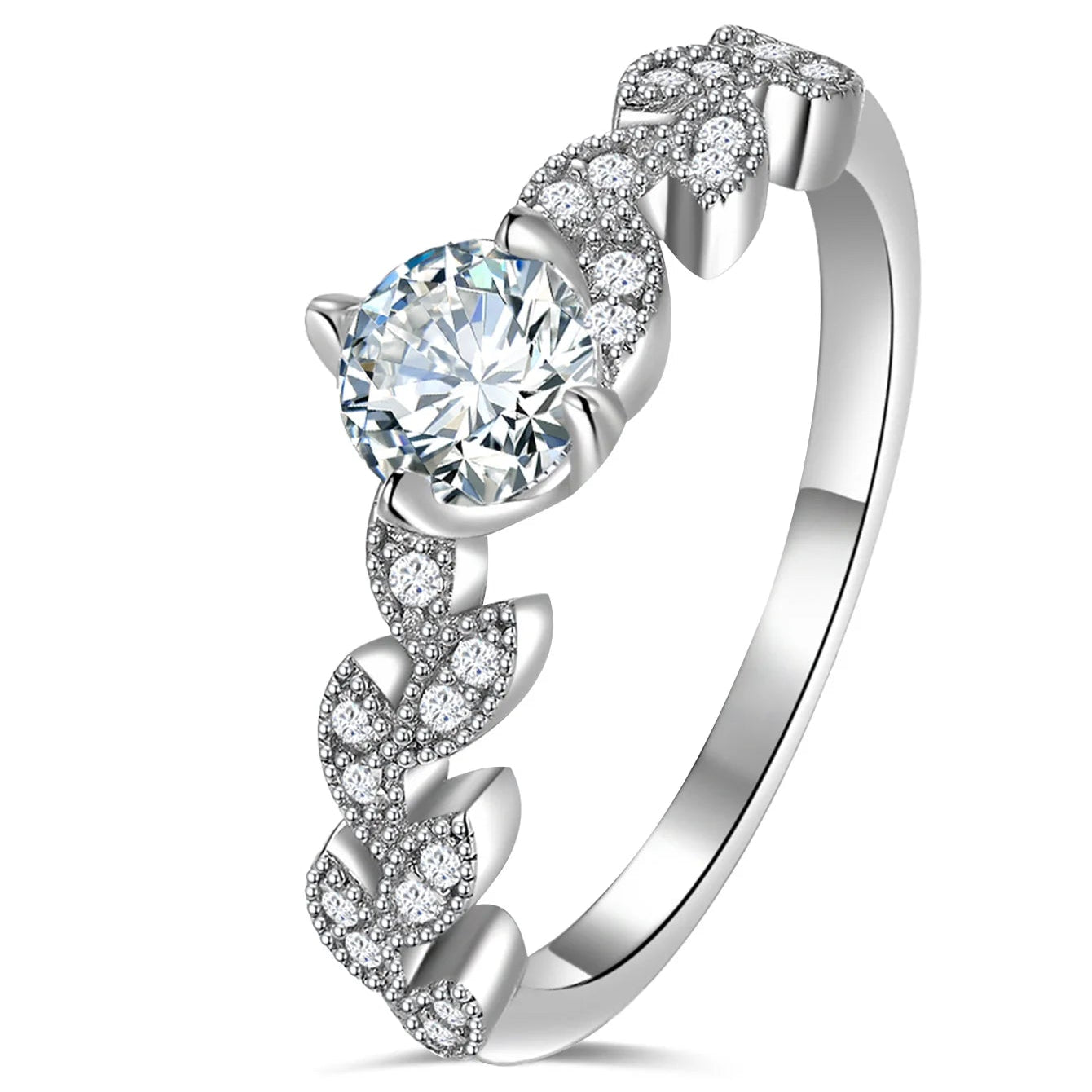 Design: Solitaire ring with aPave Leaf/Vine Design Band.