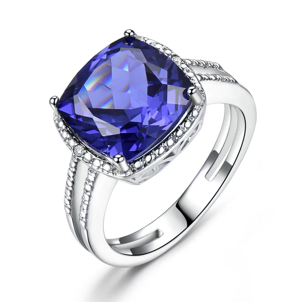Main Stone: Deep Blue Nano Topaz with a striking square cushion cut.