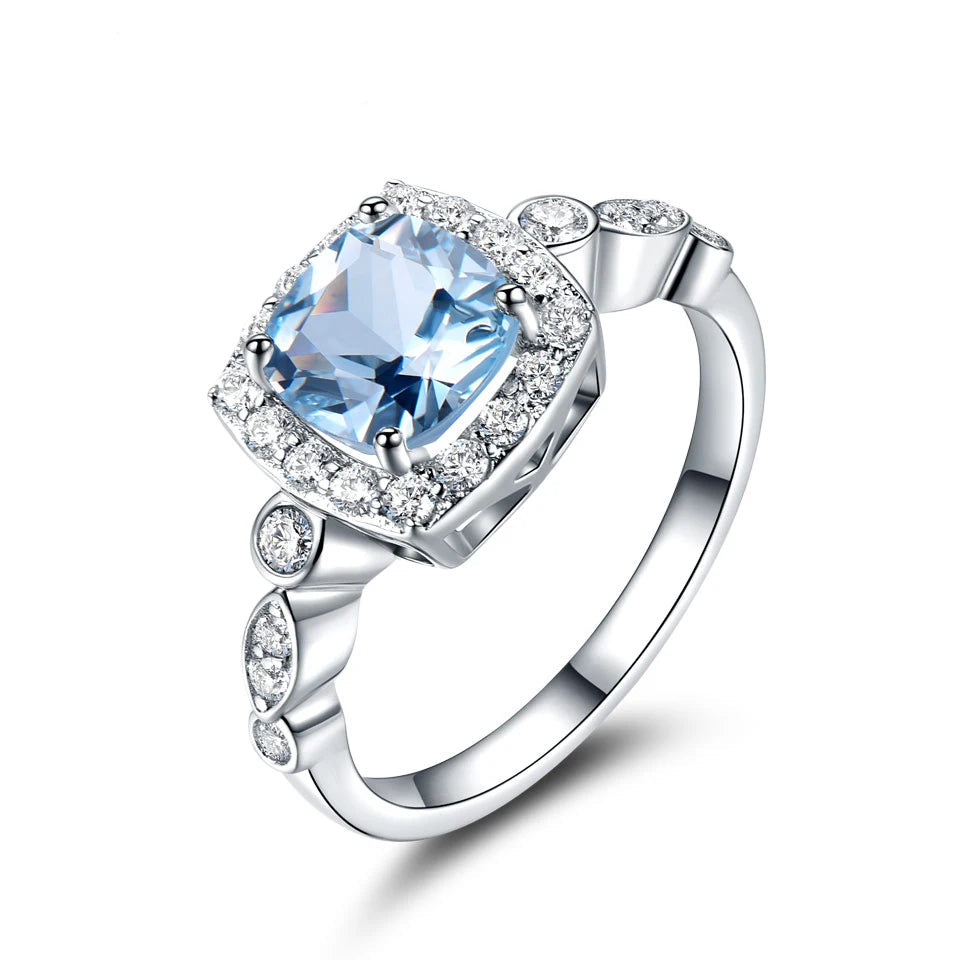 Main Stone: Nano Sky Blue Topaz, cut for maximum brilliance and clarity.